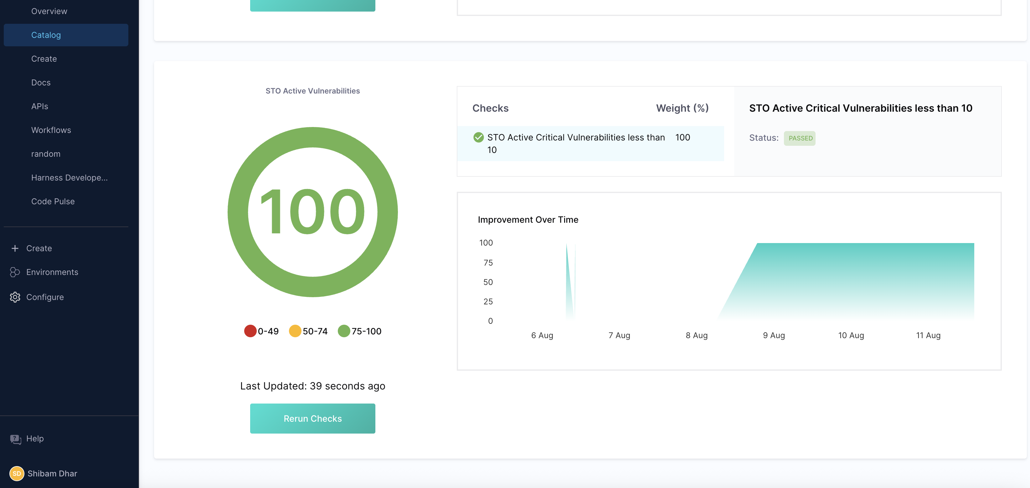 STO findings can now feed into IDP Scorecards, allowing automated tracking of security compliance across all services. Custom vulnerability checks, thresholds, and severity filters can be configured to reflect organization-wide security posture.